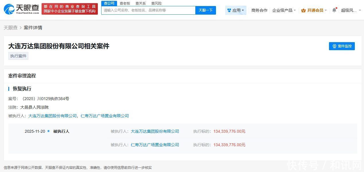 股票自己配资流程详解 万达集团等被恢复执行1.34亿